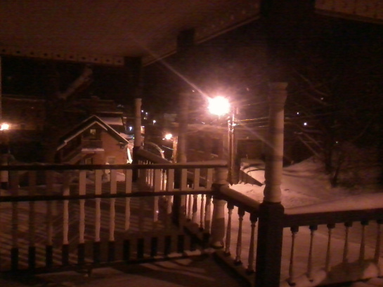 Sun.23.Dec: 6.11 The snows continued through the night last night. The plow just came by moments ago and from the looks of it, there’s considerably more than the 15cm the weather forecast told of. And it’s still falling, lightly, but still falling. I have to ask myself this morning, why I am awake at this hour. The possibility of someone coming by to visit, or even to return to the house this morning, at this hour, is so remote that it’s non-existent, let alone, the probability of someone dropping by or returning to the house at all today is equally remote. No, I’m here and I tend to believe it will be that way for the day… perhaps the next couple of days. As for SB, I seriously doubt I’ll be seeing him any time until after Christmas. – These days have been interesting. When we first came here, in August, I looked at this house and thought how wonderful it would have been if I could have afforded to live here alone. Isn’t it strange that that very thing should happen? Indeed, that’s how it’s turned. Of course, I didn’t see me being rather trapped, no car, no cash, no phone. But, this is how Fate is: a miserably rotten prankster, always at the ready to slap the face, give one thing and rip 10 things away. I have to laugh though, when I think of how it would be if SB were in this position… alone, in this rather huge house. Well, to him it’s huge. I’ve really gotten so familiar with it in my solitude that it’s actually not much larger than a duplex box. And, interestingly, I’ve managed to become personally familiar with all the rooms: living-room, the 2 “bed-rooms” on the first floor, dining-room, kitchen, utility, even the cellar. I spend a lot of time traversing the stairs… the house has become “mine”, even to the point where, like this morning, I’m awake, having had my quick morning coffee and getting ready to go tend to the shovelling of the drive. By this time, I see SB having already had a break-down. Yes, I lived on the dunes on the beach, under a tree, in my youth, in the back of a VW and today, in a little Victorian house… 2km from the Québec border, in the snow. Now I lay me down to sleep… if I should die before I wake, fuk them all, I’ve come through one HELL of a LOT more than a person should be expected to handle and cope with. That’s my opinion, my attitude, my view of it all. I am living the life of an old Hermit here, not completely by choice, almost imposed. I am the “old man who lives in the rooms alone, who comes out only once in a while to shovel the drive, sweep the porch, check the mail”. It might be nicer if I cared. I don’t. – For this morning, just one note before getting on with the day: the fingers on my left hand are worse this morning. The pinky gives the sensation of being so swollen that it’s painful. But to look at it, it’s the same as it usually might be. The other fingers are just numbish-painful. I can’t say where the pain is or describe it in any way other than just as I have. It’s all very rather strange… and terribly uncomfortable. And obviously it’s not from the cold in the house because the house isn’t cold at all. Well, another thing to note and not give a shit about. And to that I say: “Bonojour”, because French is the language of thought this morning. – 13.21 Once again, the drive is cleared. Quite a bit of snow this time. But a bit of Country music and it just went by. Odd, this time, I resent having done it. First: Hilary said “I’ll pay YOU to shovel instead of some stranger in a truck who just comes in with a plow and shoves the snow to the edge.” That hasn’t happened. Second: I shovel and Silas doesn’t notice… even when he’s WALKED down the drive to the back door! Third: Neither of them seem to be aware of the money that I’ve saved them… 40$ for Hilary as of today and 20$ for Silas. You know? I mean to say: Fuk the both of them. I’ll do what I can, when I can and if anything negative is said… FUKKEM BOTH! And that’s my story. – Took a couple of pictures of me with the web-cam thing just now. Sent 2 to Nancy! Oh my! – And now it’s time for a bit of a bite to eat, a hot coffee, shower and some laundry (especially the laundry… something’s terribly wrong with my entire chemistry and I and my clothes are smelling quite sour). Too much info but… – 18.43 laundry done and I’ve showered. The house is in order. I ate (4 chicken patties with a bit of pasta sauce and cheese… I’ll be dying of thirst in short order). Out-side it’s gone dark and the snow is still steadily falling. In a bit, the drive will need attending again. And… this afternoon, a quick e-mail from Burton sent at 11.333: