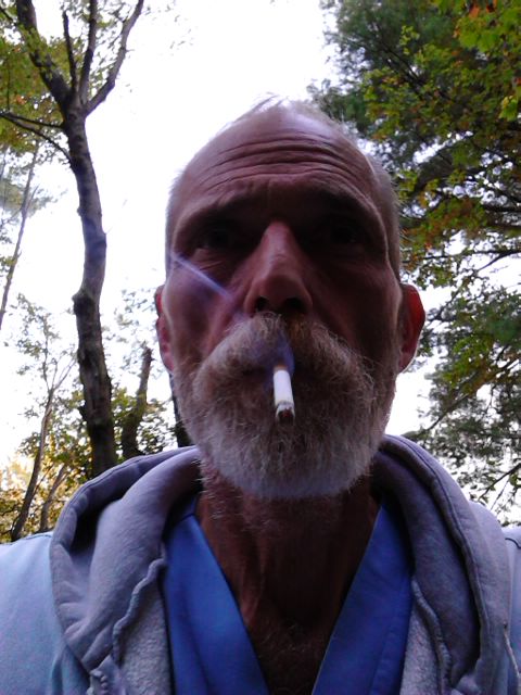 6.13 Well, the COLD has descended indeed. Sweats and sweats and more sweats (shirts and pants, that is). And where the mornings used to provide an air current out of the windows, there is only the cold air coming in. And where, at 6.00 the sun would be rushing in through the glass, there is only the hint of the day-light to come. And I am reminded: No Winter clothes this year, and no matter what… a 20mile hike for provisions… and no income. – But the herb garden has to be finished today. A little light weeding on the front flower-bed… not much more than that and all's done here.- 6.33 Confirmed: 4 degrees. The low was supposed to be 5 for the night. Monday's “low” is expected to be 4. All I can think of at this moment is: If it's 4 now, that means it was lower during the night which means the forecast was conservative. If the forecast low on Monday is for 4, it will, no doubt, be colder and single digits are approaching “freezing”. OK boys and girls. And the bottled water for this morning's coffee was so cold that it wasn't even slightly enjoyable.Time to find the way HOME… quickly here. (Hey! As soon as the sun comes up, I'm out of the house and into the garden to finish that! Daisy's garden WILL at least look as it did when she tended it.) – 6.57 AND THE FIRST RAYS OF THE DAY'S SUN-SHINE HAVE FINALLY MADE IT IN THROUGH THE WINDOW! I've been sitting here, catching up, with the hood of the sweat-shirt on my head! Indeed… quite the “chilly” morning. – 7.17 I just looked at the photos of me that I put up and I can’t help but think: SHIT! I’m looking like one of those skinny, starving old farmers I remember seeing in the bars in the Catskills when I was just a kid! Fuck all! I’m quite proud of this “look”. Yes, I’ve been in the sun, wind, rain… I’ve worked the soil with my hands and with hand-tools… I’ve eaten precious little and I know what it’s like to go to bed on the edge of starvation… I’ve busted everything but my heart by now and as far as what the rest of this World thinks of me? I won’t even invite the lot to eat the diarrhea I get from malnutrition. SO many don’t even know SHIT about me or what my actual existence is all about. So you know? Bugger off! Not even a simple Fuck off. Let the World take it right up the arse… with a major twist! – A lovely way to begin a new day… as the sparrows bicker on my window ledge for the frankfurter roll I’ve put there for them. Oh, it’s such a delight to wake up … at all… NOT! – TO THE GARDEN! – 22.48 Very tired. Will have to catch up in the morning. But Daisy’s garden is DONE! PLAYED with Dixie today! Great fun! I cut-trimmed the front flower bed. Weeding tomorrow. Good dinner of much spaghetti! Frisbee with Dixie after dinner. Shower. 2 beers tonight on porch. Chilly. Watched farmers all over. Showered well tonight. Tired. CHILLY night! (No Winter clothes. Don’t care. Not long for here anyway.) – And so for the catch-up (on Sat. morn.)