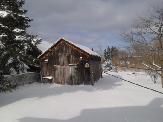 eternally. – And I almost forgot to mention: Now, this is not from me, this is from B. himself who claims it’s from his doctor. The hernia is at the umbilicus, it’s neither muscle nor intestine.. it’s FAT… and the doctor told him that it’s fat because he’s too heavy. OK. So, he tells me this as we’re standing in the kitchen yesterday… and I’m supposed to say… what, exactly? Well, the yard work is done and the barn is getting cleaner. – New thought here. VIV mentioned that she wants to get the turkey on Saturday to cook for Sunday “lunch”. “Lunch”, I don’t think I’ve actually heard anybody use that word in such a manner in YEARS! I haven’t thought about a “lunch” since… forever. Lunch… imagine that. All I’ve been saying for years is “getting something to eat”. Imagine that. (And now, this morning, to fixate on the word… it brings memories of 101 Wisner Ave… Lunch.) – 7.53 Back up from a smoke and oddly, this morning I’m in a bit of pain… generally. And the inflammation in the navel is sore as well. I wonder why. – It’s 22° in there this morning. Forecast says the temperature will top to 15° at about 11.00 and then plummet to 2° tonight. Snow… 3cm tonight. Well, the back yard is clean and clear. I might just open the upper barn door and sweep everything into the yard, The wind, snow and rain can take care of it instead of me dragging it down back. I can’t do that anyway… no shoes to wear for such a thing. Fuckit. – Oh… and again this morning, I slept through the alarm. Well… I didn’t get to sleep until past mid-night again. Poor VIV! We didn’t ring off until about 23.00! – 13.00 The sore in my navel ERUPTED! PUSS! PAINFUL! Quite red and rather raw. I cleaned it out with a cotton swab put some TAB ointment on a cotton ball and am holding it in place with a band-aid. I’ve no idea what’s caused this or where it’s coming from. Hopefully it’s not that “ebola” shit. But, if it is, at least I have a general idea of what it can become… and considering where it is, well… I’ll have time to make it HOME before… A dream come true. Meanwhile, I can’t help but think of all the “drama” in the house because B. has a hernia. A tiny hernia. A “fat” hernia… as he said, it’s fat matter coming through because he’s over-weight. Hey! That can be avoided. But it’s not for me to judge… and not for me to give a shit about. I’ll just clean this out as best I can and see what it becomes, if anything. I’ve no time nor interest in doing anything more… or less. – 17.41 SNOW? SNOW! IT’S SNOWING! The rain is beginning to mix now. The forecast claims that there won’t be much in the way of accumulation. But still… just as I got the yard together and was feeling “accomplished” about it all… and as for the rest of us, we were hopeful that this would be done, gone, behind us for at least a few weeks… never mind months. – I’ve come back to the North Country… Only a year ago I was back in the City, sitting on the roof of a 6-storey building, surrounded by buildings that rose 40 or more storeys into the sky. I was sitting on the roof, in the sun, sweating, while my heart, soul and mind were in Richford. I was “sleeping” on a sofa in an apartment where my presence was not welcome. I was alone in the midst of 8 million people. And today, I have a bed on which to sleep, in a room, in a house where… my presence is.. not welcome… alone… in a State of 600 thousand… alone in the snow, in pain, and nobody knows. Things will never change… it seems. – Well… midnight and then some and to bed at last. But had a WONDERFUL chat with VIV tonight! We laughed, and that’s the most important. There’s no snow at HOME tonight… well.. none to speak of anyway. But temperatures are low. Winter will NOT leave the North Country. But I got to speak with and SEE VIV! And as far as I’m concerned…the world is well. – B. has posted a photo of his navel on FB along with the “Woe is me” posts of his pending “surgery”. I made mention of my “eruption” as I passed the parlour en route to a smoke. L. says “That might be an indication of something more serious. You should have that looked at.” and the matter was… dissolved. Indeed, nothing changes. Have it looked at? By whom? When? My “primary physician” is in Burlington these days. I could go to the local ER… on the bike or on foot. If I’m to invest that energy in travel, I have more important things to attend: a bit of cash for the week-end with… VIV! OH OH OH AND DANIEL! HE’S COMING WITH HER!!!! IT’S BEEN 28 YEARS SINCE WE’VE SEEN EACH-OTHER! AND THAT MEANS I’LL MOST LIKELY GET TO SEE GAETAN AS WELL! MY LIFE IS WONDERFUL! (and this isn’t segueing at all and I don’t care). MAYBE I’ll be able to get a pair of shoes back HOME. I need some clothes as well, but shoes are most important at this point. There’s the matter of rent as well.. but that’s going to be put off for as long as possible. Right now, I have to think of ME and the immediate future. I’m burnt from the last bit where the rent is concerned. 3 entire pay-cheques and for what? I mean, it’s even gotten to the point where I’m no longer even invited to dine with the rest of them. But the work round the house is done… and I’m wondering if I’m  expected to bring B. to hospital on Thursday. Imagine that! Expected… Nah… time for me to consider “them” the way they consider me. – Earlier today I over-heard L. speaking on the phone down-stairs. Something about a “Saab, automatic transmission, “that’s a give-away for that car”, “let them know we’re very interested”, and “I want the station waggon”. They’re looking into the second car. God for them. Time I looked into my first! OK then, time to wrap this day and this entry up. I have photos I want to include in this entry… navel and snow. Quite the