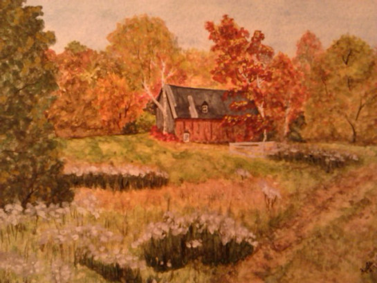Mon.13.Oct: 6.56 Well… HAPPY THANKSGIVING I suppose. Stuck in Fuklin for the day. And the prospect of having to bike into St.A. today for coffee, food, and to pay the fucking phone. – But for now… I have to go back to Saturday and catch up. I’ve been lazy as all shit about this Journal. – 7.39 and the sun is JUST coming into the windows! Yes, the Winter is coming crashing down upon us… sun-rise at 7.39 in the morn, rather then 5 or 6.00! – The plants are looking quite well and the Christmas cactus is popping with flowers. I can’t help but wonder: are the blooms some kind of “message”? The orange tree is doing well and even the ivy has made a bit of a come-back. May this hold through the Winter.. may I get the jolly fuck out of and away from here before “Winter” settles in! – 7.54 caught up with the past couple of days, The sun is in the morning sky. I’ve had one coffee and smoke and will have another. The detail shop across the road is opening or, there are folks going in to work. I’m going for another smoke. The phone store opens at 10.00 so I’m in no particular rush. I HATE the thought of having to go today. There’s travel in the week to come. A day in Bedford included. I’ll have to figure how to get that all into a day… Tomorrow after-noon is Highgate, Wed. is Fuklin, Thurs-Fri. is the Creek, Sat. Fuklin again. I’ve smokes until Sun. Oh… we shall see. I also have to get to the CU! Perhaps tomorrow. I don’t really know. The bike from St.A. to Highgate is… I’ll have to check it. – Checked. The same as the route I took one day from Bedford to St.A. Oh well… let’s just hope for NO FUCKING RAIN! – 8.06 time for the 2nd smoke. – WHAT A DAY! JUST ALL TOO SIMPLY… WHAT A DAY! The weather was amazingly nice, warm again, sunny. The room stayed on the cold side, and I had to keep the black sweat-shirt on whilst in. But, for some reason, I felt like painting. So I took out the water-colours that I was given Christmas past, to try them out, and there were a few sheets of paper in a pad I’d gotten some-where. The photo from NanciLynn’s post to fessebook looked inspiring so I got at it this morning… and worked on it ALL through the day. It turned-out “not so bad”. The paints are MUCH different to work with than the more expensive that I have in the box, but, it was actually quite wonderful to work with water-colours again and I enjoyed it. Well, by about 19.00 or so, I’d finally finished the piece and went to post it to fessebook, to “exhibit” when I found a message from NanciL. referring me to the “PaperCoffeeCupCampaign” on GFM. So I popped over to there on-line to find….